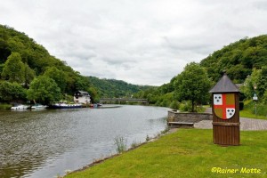 Beim Anrollen auf Balduinstein zu sehe ich sie schon vor mir: Die imposante Schaumburg. Wie ein Märchenschloß erscheint sie im morgendlichen Dunst. Im verschlafenen Balduinstein, in dem die Zeit irgendwie stehen geblieben zu sein scheint, darf man am Bahnhof parken, wenn man den Zug nutzt. Das tue ich und fahre in die Bischofsstadt Limburg. Dort empfängt mich leider leichter Nieselregen, der aber erfreulicherweise aufhört, als ich Limburg verlasse. Bewölkt bleibt es hingegen den ganzen Tag. Während ich vom Bahnhof bis zum Stadtrand dem GPS-Track folge, finde ich ab dort auch das markante Wegzeichen des Lahnwanderweges.