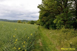 Nach Verlassen Limburgs geht es mehrere Kilometer lang kreuz und quer auf Wiesenwegen über nicht enden wollende Felder. Gut, an der wenig interessanten Wegführung kann man mangels Alternativen nichts ändern, wohl aber an der Instandhaltung des Weges. Hier muß ich schimpfen: