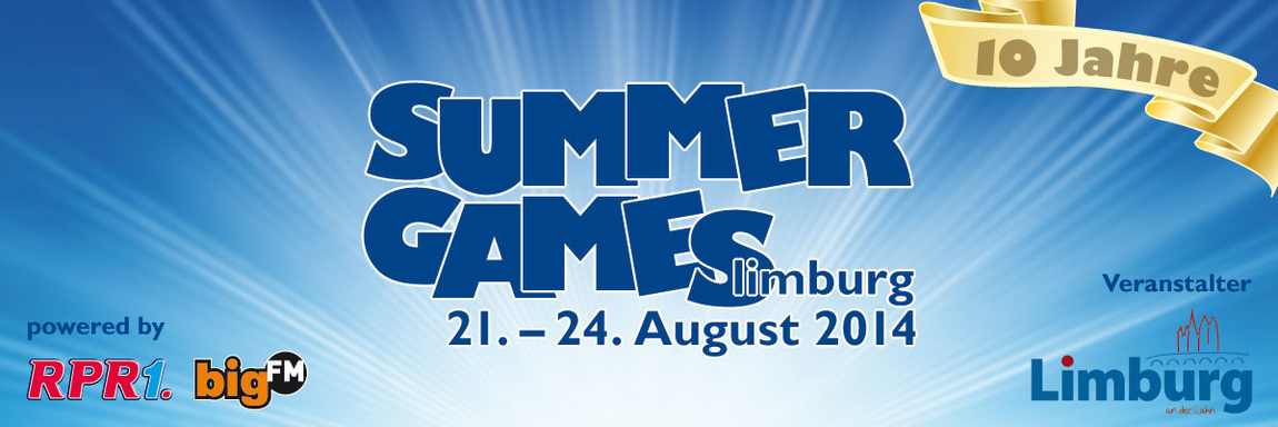 An diesem Wochenende ist es wieder soweit. Bereits am Donnerstag, dem 21.08.2014, werden die Limburger Summer Games um 15:30 zum zehnten Mal eröffnet. Die Idee in der Limburger Innenstadt ein Familien-Stadtteilfest zu feiern und dabei den Neumarkt in einen Sommerstrand zu verwandeln wurde schon im Jahr 2005 geboren. Schon im ersten Jahr zählte man 25.000 Besucher. Mittlerweile kommen jährlich mehr als 50.000 Besucher und die Summer Games haben sich zu einem der größten Stadtteilfeste der Region entwickelt.