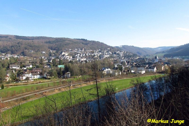 Die beiden nächsten Bilder hat Markus Junge auf seiner Wanderung am Lahnwanderweg von Obernhof nach Bad Ems geschossen. Beide Bilder zeigen Nassau, einmal auf dem Weg hinab von der Hohen Lay und einmal von der anderen Seite, vom Freiherr-vom-Stein-Denkmal aus.