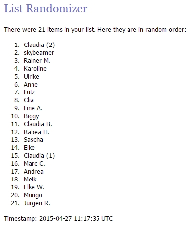 na, dann hat random.org ja ein Einsehen gehabt ;-)