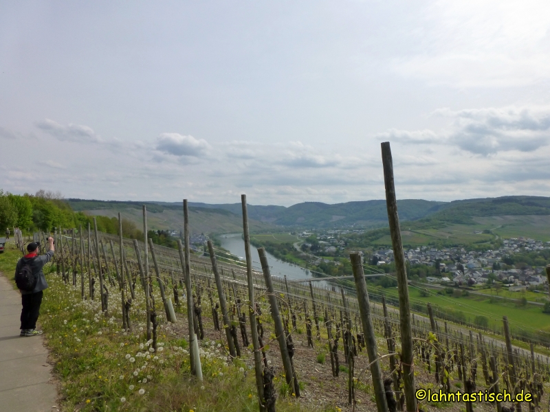 Die Hauptschleife war fast 40 km lang und davor hatte ich ehrlich gesagt tierischen Respekt. Außerdem sind 777 Höhenmeter ja auch kein Pappenstiel. Zunächst einmal führt uns die gut ausgeschilderte Strecke (knapp 500 Wegemarkierungen wurden für die Veranstaltung ausgebracht) der Mosel entlang. Ich richte meine Blick auf die Weinberge, auf die idyllischen Häuschen der Ortschaft Lieser und die Mosel auf der uns ein Ausflugsschiff entgegen kommt.
