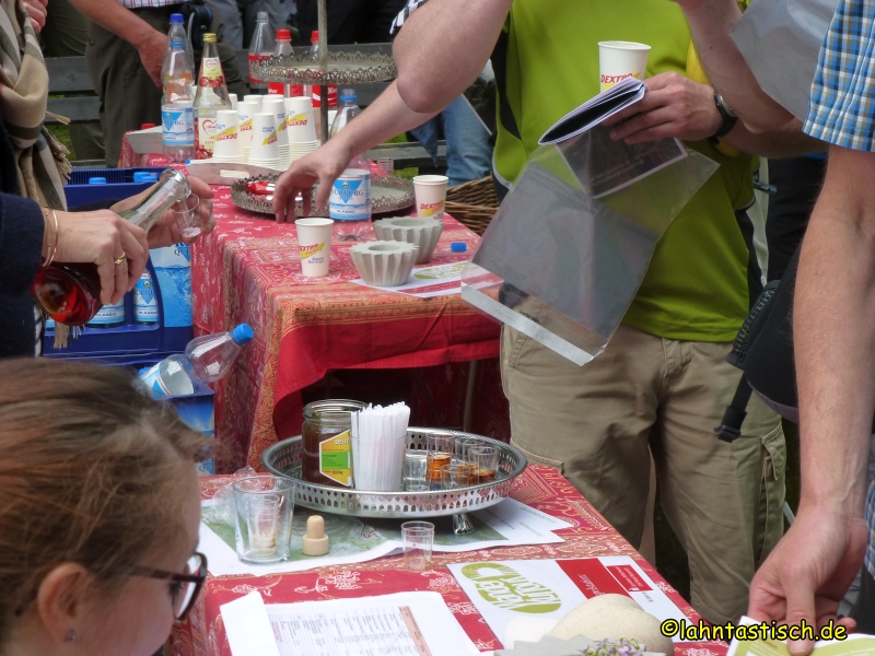 Auf dem Moselhöhenweg ist dann die Ortschaft Monzel unser nächstes Ziel. Der Wein ist hier allgegenwärtig. Am Gemeindehaus begrüßt uns eine Kindertanzgruppe. Der Heimatverein Osann-Monzel ist Partner dieser Verpflegungsstelle. Hinter Monzel geht es durch die Weinberge bergauf. Ein wenig schweißtreibend aber wenn man sich mal umdreht und nach hinten schaut lohnt es sich. Schließlich gehen wir am Wald bzw. im Wald der nächstten Verpflegungs- und Stempelstelle am Sauerborn Kesten entgegen. Hier gibt es Kastanienlikör mit Honig! Der sieht richtig lecker aus. Aber ich weiß, wie Alkohol während einer Wanderung bei mir wirkt und deshalb verzichte ich.
