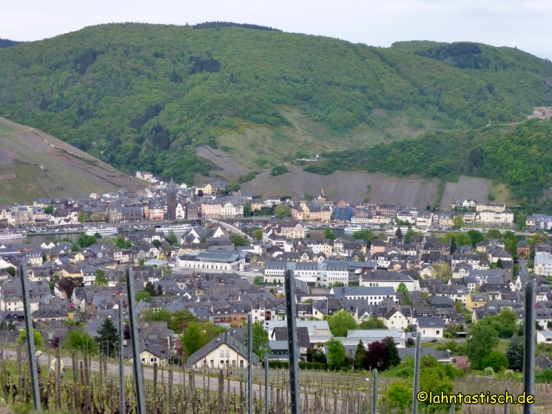 Über die römische Kelteranlage Maring-Noviand geht es dann hinauf zur Paulskirche Lieser. Ein Anstieg der sich ganz schön in die Länge zieht. Aber ich weiß: wenn ich dort oben bin geht es nur noch relativ eben auf einer Höhe weiter und dann bergab zum Ziel. An der Paulskirche hat die Tourist-Information Lieser Schmalzbrote für uns. Sehr viele Kohlenhydrate, da darf man nicht vorbei gehen. Ich genieße den Blick über das ursprüngliche Moseltal mit den Weinbergen. Mit dem Extra-Treibstoff aus den Schmalzbroten sind dann auch die paar Kilometer bis ins Ziel kein Problem mehr. Ich horche in mich hinein. Die Beine sind in Ordnung, die Füße machen noch mit, keine Blasen… alles ok. Am Kurgastzentrum gönne ich mir noch ein alkoholfreies Radler und nun geht es wieder hinunter nach Bernkastel-Kues.
