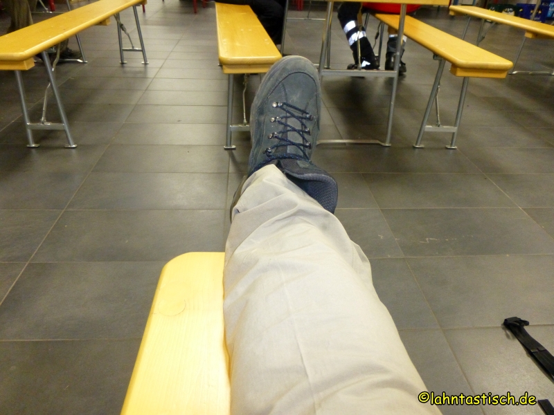 Um 01:00 Uhr komme ich an der Grundschule an. Hier ist im Moment nicht viel los. Ein großer Teil der Wanderer hat sich auf die zur Verfügung gestellten Matten gelegt. Ich muss nochmal an mein Gepäck, versuche ganz leise zu sein um niemanden zu wecken. Zum Glück gibt es schon frischen Kaffee. Nochmal kurz die Beine hochlegen. Und dann melde ich mich wieder zum Start.