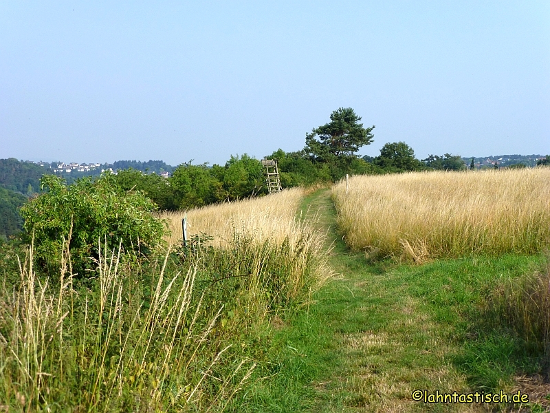 Weiter geht es auf dem Lahnwanderweg. Bitte bleibt auch auf diesem, der Lahnhöhenweg rechts der Lahn führt direkt durch das Naturschutzgebiet Wehrley und sollte eigentlich nicht mehr begangen werden. Der Lahnwanderweg führt am äußeren Rand des Naturschutzgebietes vorbei und vor Runkel dann auch nochmal hindurch. Bis man dann schließlich den Otto-Bruchhäuser-Tempel, einen kleinen Aussichtspavillon, erreicht. Auch hier lohnt sich nochmal das Verschnaufen.