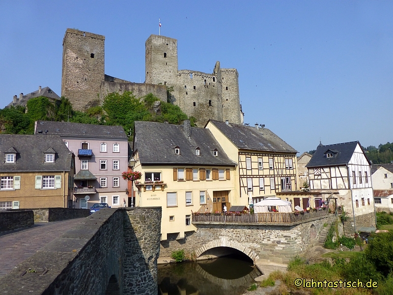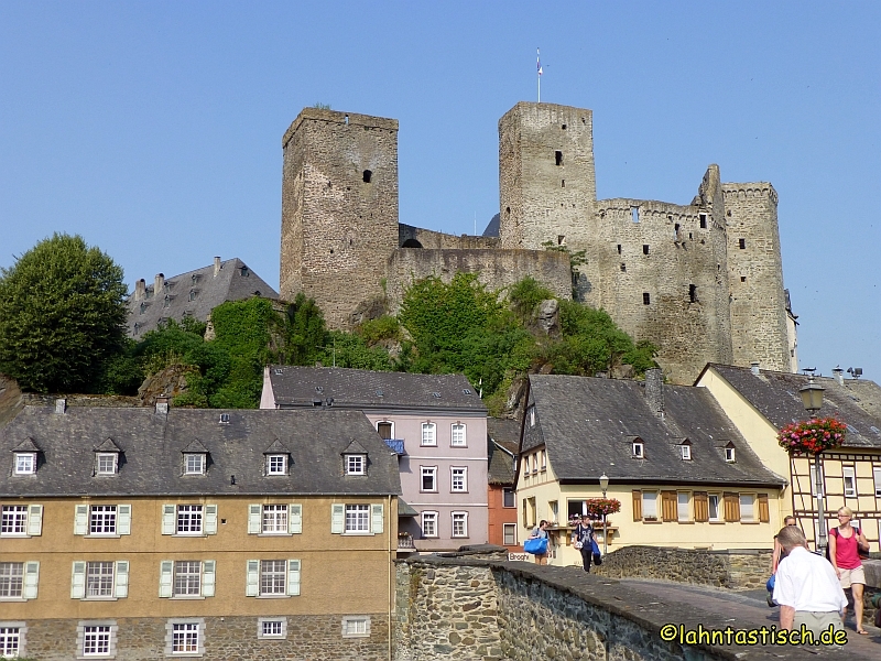 Der Lahnwanderweg führt nun wieder Runkel entgegen. Imposant ist der Blick auf die Burg Runkel und die direkt gegenüber am andern Ufer der Lahn liegende Burg Schadeck. Über die Lahnbrücke erreicht man dann wieder den Ausgangspunkt der Wanderung. Wer noch Zeit und Lust hat, sollte sich auf jeden Fall die Burg Runkel sowie die malerischen Gässchen des Städtchens anschauen.