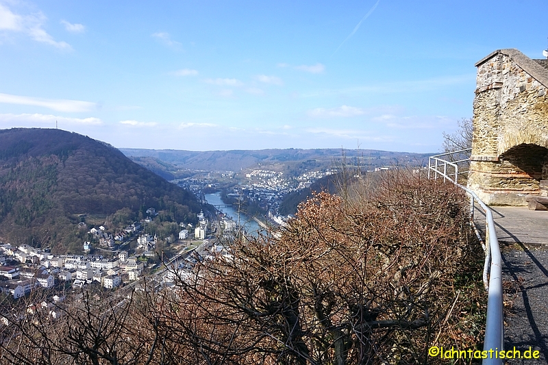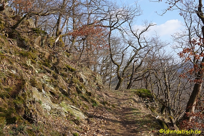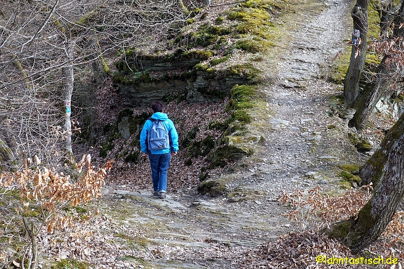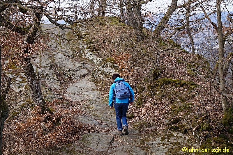 Denn der Abstieg nach Bad Ems hinunter bietet gleich mehrere Aussichtspunkte und die Heinzelmannshöhlen, ein Karstphänomen welches durch den Aufstieg von CO2 aus den kalkaggressiven Emser Quellen entstanden ist. Geocaching-Freunde (wie wir) finden hier einen sogenannten „Earth-Cache“, welcher sich mit der Entstehung dieser Höhlen befasst.