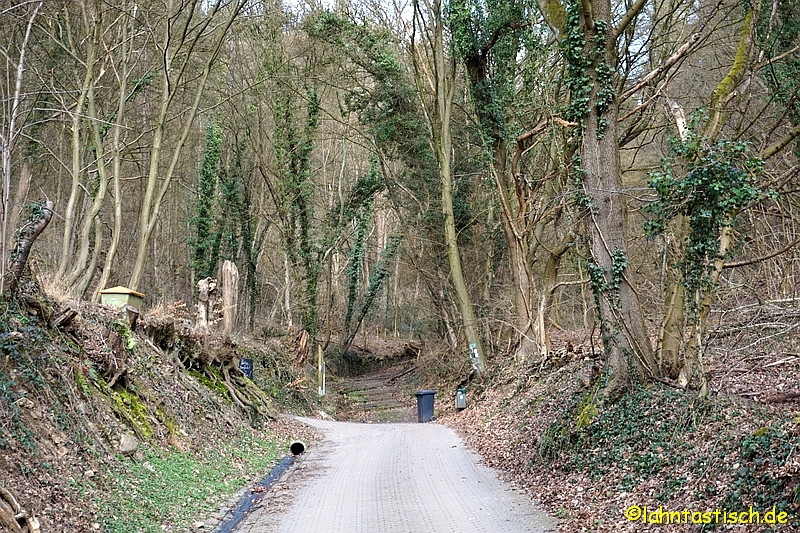 Kemmenau lassen wir links liegen (sorry, soll keine Abwertung sein) und wir wandern, zunächst übers freie Feld und an Reitanlagen vorbei, Richtung Rahmberg. Hier tauchen wir in ein Waldstück ein durch das es weiter bergab geht. Wir überqueren eine Freifläche und den Odenbach. Auf Höhe „Höhenhaus“ vereint sich die „Höhenluft“ mit dem Lahnwanderweg und dem Lahnhöhenweg rechts der Lahn.