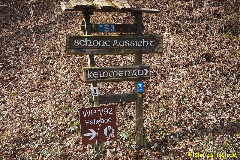 Offiziell beginnt dieser Rundweg ja in Bad Ems, es gibt jedoch auch einen Wanderparkplatz in Kemmenau. Und da das für uns fahrtechnisch günstiger lag, starteten wir hier unsere Wanderung. So ist man zur Hälfte in Bad Ems und kann dort einen Kaffee genießen. Allerdings ist die Wegführung etwas „charmanter“ wenn man die Wanderung wie geplant in Bad Ems beginnt, denn dann hat man direkt zu Beginn und zum Ende hin einige Highlights. Außerdem würde man dann zuerst bergauf und später bergab laufen was zwar angenehmer, aber für uns kein Kriterium war, denn der Weg ist ja sowieso nur 10,6 km lang und bringt uns nicht an die Leistungsgrenzen.