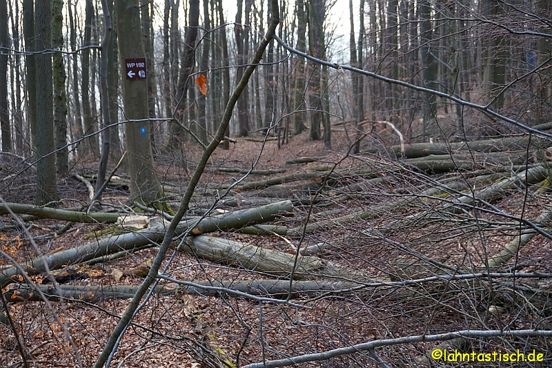 Kurz vor dem Ende unserer Wanderung dann noch ein Wermutstropfen: hier fanden Holzfällarbeiten statt. Die Stämme liegen quer über den Premiumweg und die Waldmaschinen haben ihr übrgies getan um den Weg zu Matsch zu verwandeln. Also weichen wir rechts und links in den Wald aus. Das muss gemeldet werden! Und hier möchte ich Euch die Touren-App der Gastlandschaften Rheinland-Pfalz bzw. die App Outdooractive ans Herz legen! Denn diese Apps bieten nicht nur viele tolle Tourenvorschläge sondern man kann auch die aktuellen Bedingungen auf der Strecke nachlesen bzw. aktuelle Bedingungen melden. So wie wir es jetzt im Falle der Holzfällarbeiten getan haben. Diese Meldung landet dann bei dem Autor der Tour, der sie dann an die entsprechenden Stellen weiterleitet. Wanderer helfen Wanderern! Eine empfehlenswerte Sache!