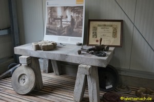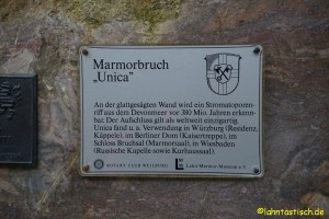 Alle Exponate werden bereits von Besuchern umringt. Abbau, Bearbeitung und Verwendung des Lahnmarmors werden hier genauso anschaulich dargestellt wie die regionale Bedeutung und der Export. Wussten Sie beispielsweise, dass beim Bau des Empire State Buildings in New York 270 m³ Lahnmarmor verwendet wurden? Zu Beginn der 1930er Jahre auch eine gigantische logistische Leistung wie ich meine. Aber natürlich erfährt man im Museum auch, wie der Lahnmarmor vor etlichen Millionen Jahren einmal entstanden ist.