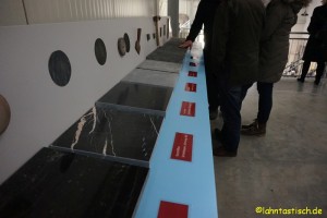 Villmar, 20.03.2016 – 14:00 Ortszeit: Es ist soweit! Nach über zwei Jahren Bauzeit öffnet das neue Lahn-Marmor-Museum seine Pforten für die Öffentlichkeit. Volle Parkplätze vor dem Museum zeigen an, dass drinnen schon ganz schön was los sein muss. Und so ist es dann auch. An der Kasse können wir heute vorbei gehen, denn der Eintritt ist am Eröffnungstag frei. Und schon sind wir mittendrin in der Dauerausstellung.