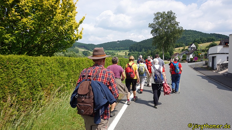 Am 23.06.2017 durfte ich dann endlich auch einmal das obere Lahntal kennenlernen. Treffpunkt war am wunderschönen Backhaus in Feudingen. Und von dort starteten wieder über 20 Teilnehmer auf dem Lahnwanderweg in Richtung Bad Laasphe. In Sassmannshausen wurden weitere Wanderfreunde aufgenommen.