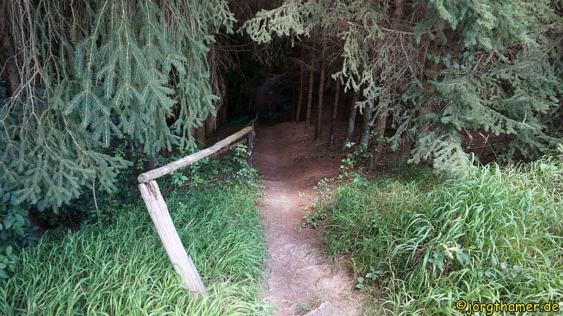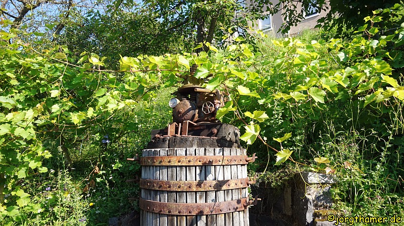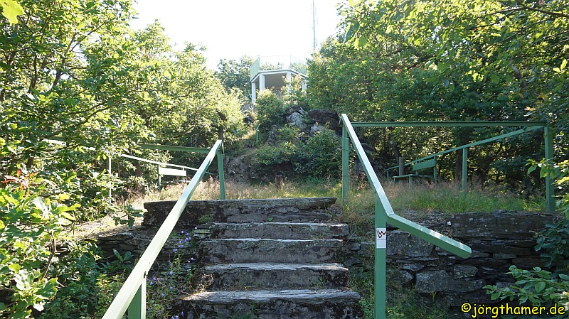 Vom Bahnhof aus überquere ich zunächst die Lahnbrücke. Und dann kommt gleich ein ziemlich kräftiger Anstieg. Vorbei an Weinstuben geht es hinauf in die Weinberge. Dort dann ist gleich eine Entscheidung gefordert: ich muss hinauf zum Goethepunkt und es gibt zwei Wege. Zum einen die einfache Variante und zum anderen der kleine Klettersteig. Na klar, ich entscheide mich für den Klettersteig.