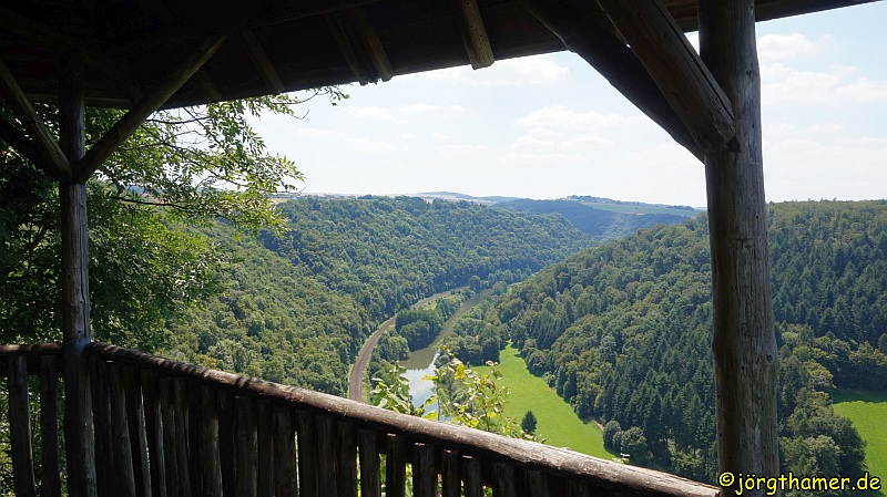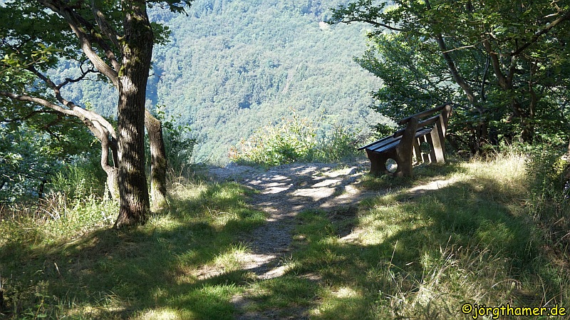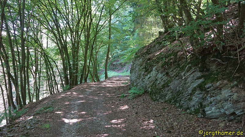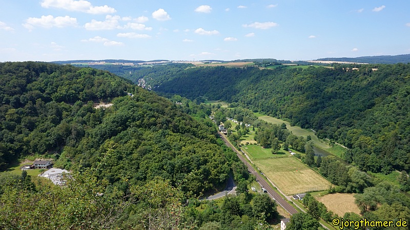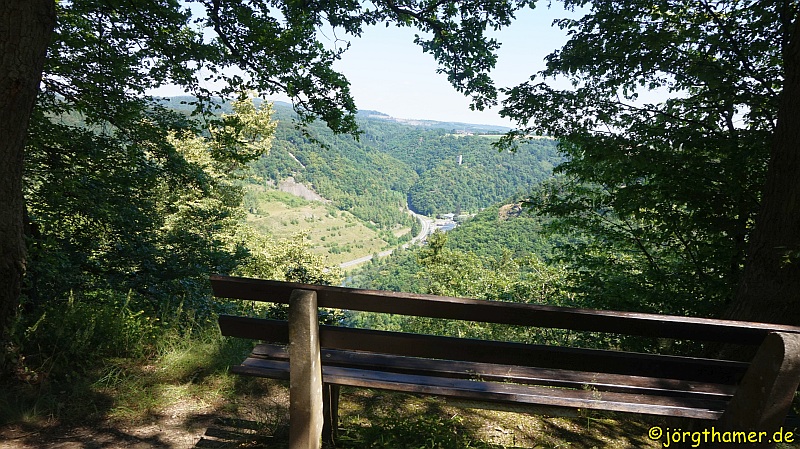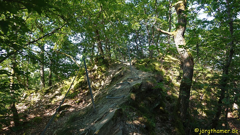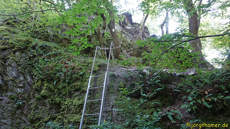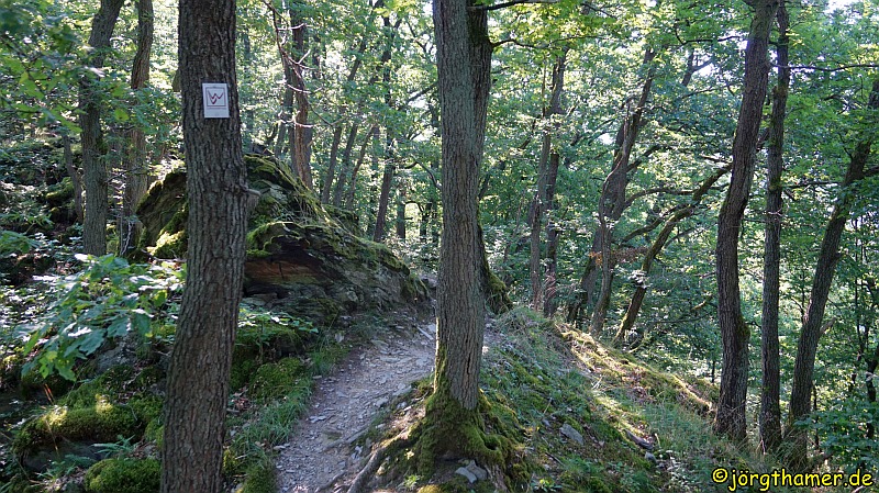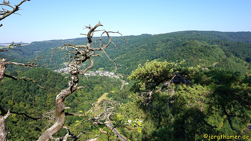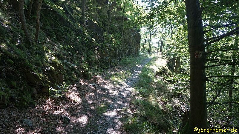 Nun geht es erst einmal ganz gemächlich durch den Wald, dann auch mal über Wiesenwege und schließlich errreiche ich an Felsformationen vorbei die Wolfslei. Dieser Ausblick ist einfach klasse und so lasse ich mich zu einer langen Rast nieder.
