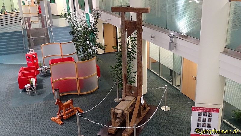Die Ausstellung Expedition Custine im Erdgeschoß ist für alle Interessenten während der Öffnungszeiten frei zugänglich. Der Eintritt ist kostenlos. Unter dem Thema „Die französische Revolution scheiterte in Limburg“ dürfen hier unter anderem eine vier Meter hohe Guillotine und eine 1,5 Tonnen schwere Kanone bestaunt werden.