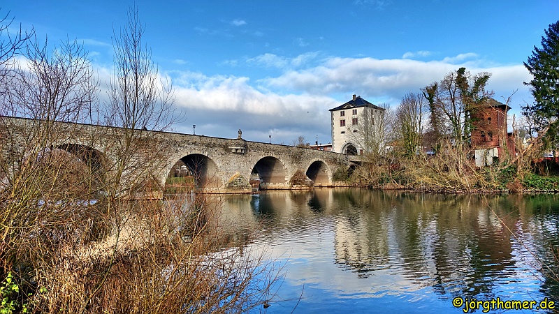 Die Strecke aber geht hinter der Brücke gerade aus weiter und dann der Lahn entlang zurück nach Limburg. Hier hat man einen wunderschönen Blick auf den Dom, überquert die alte Lahnbrücke und wandert dann unterhalb des Domes zur Obermühle.
